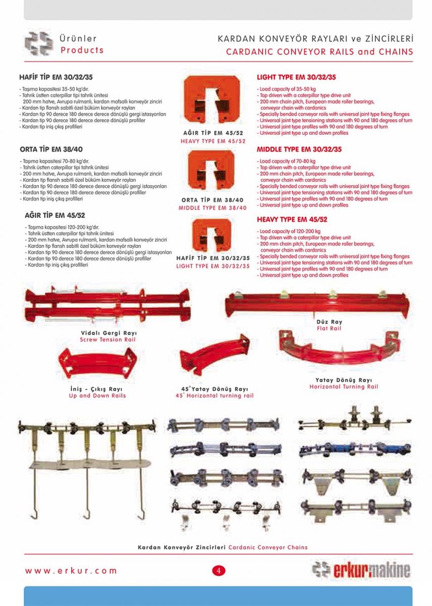 Kardan tip konveyör, kardan rayında kardan zincirinin,